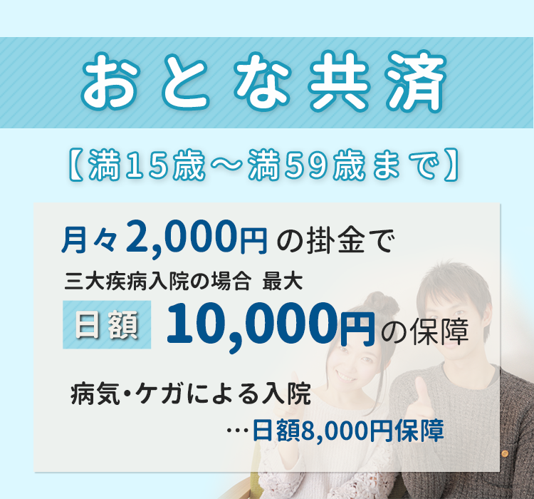 月々1,000円で入院、手術を手厚く保障。シンプルで分かりやすい保障内容となっています。