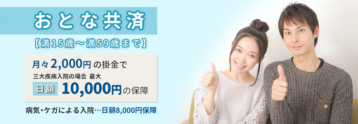 こども共済は15歳になられて契約満了を迎えられるまで月々1,000円は変わりません。なお15歳になられた際には月々2,000円と掛金は上がりますが、告知なしでおとな共済へ契約移行ができます。